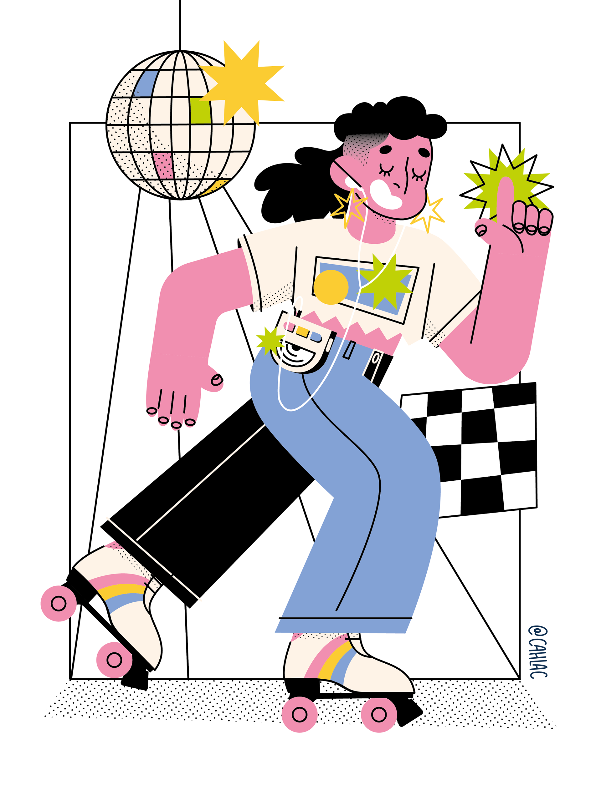 Illustration of a person dancing with rollerskates
